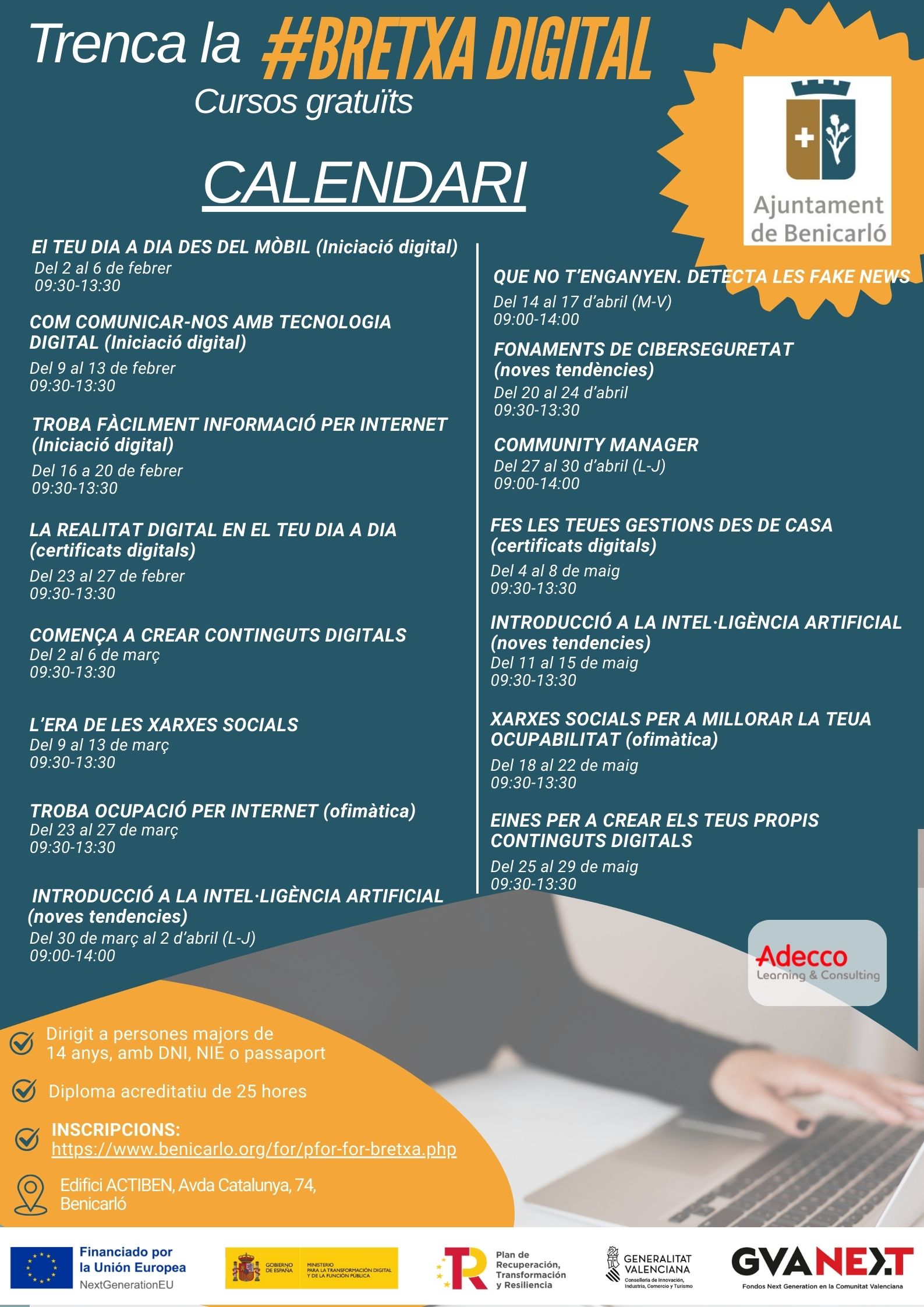 Inscripció en línia: https://cdt.gva.es/va/curs/?curso=FN02126&cdt=6&desdeBuscador=02-2026-06&index=6,8